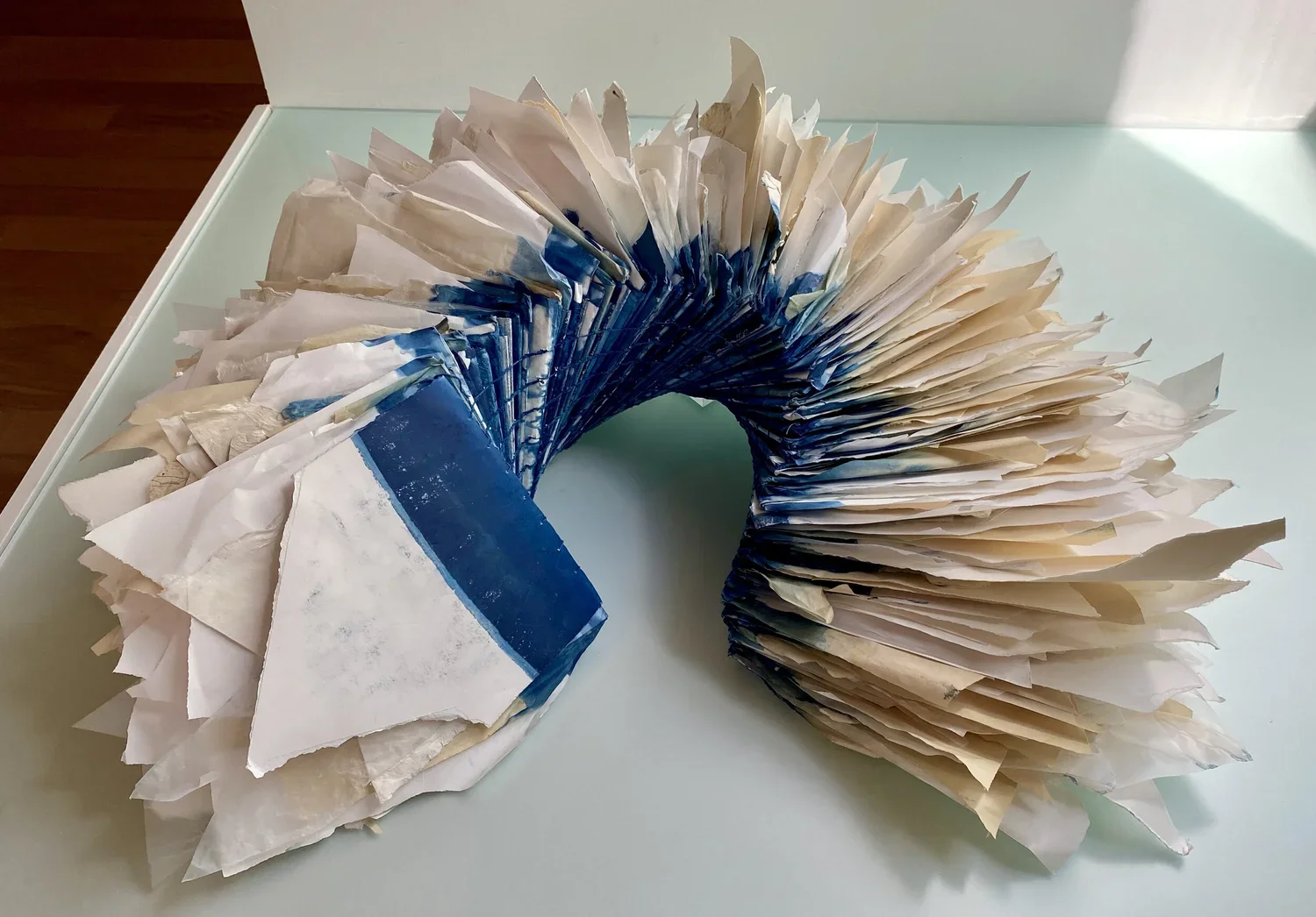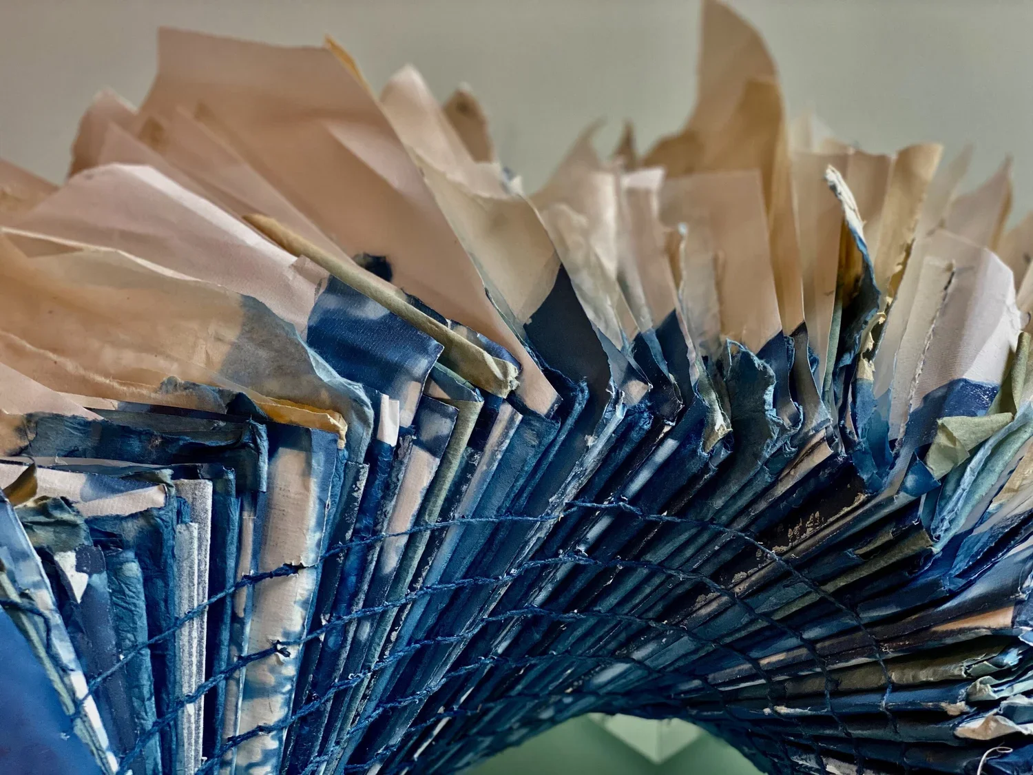 Rachael Mayer: Untitled (Context) | Indigo Dye, Watercolor, Printmaking, Newsprint, Tracing Papers & Silk| 36 x 40 x 15 in.