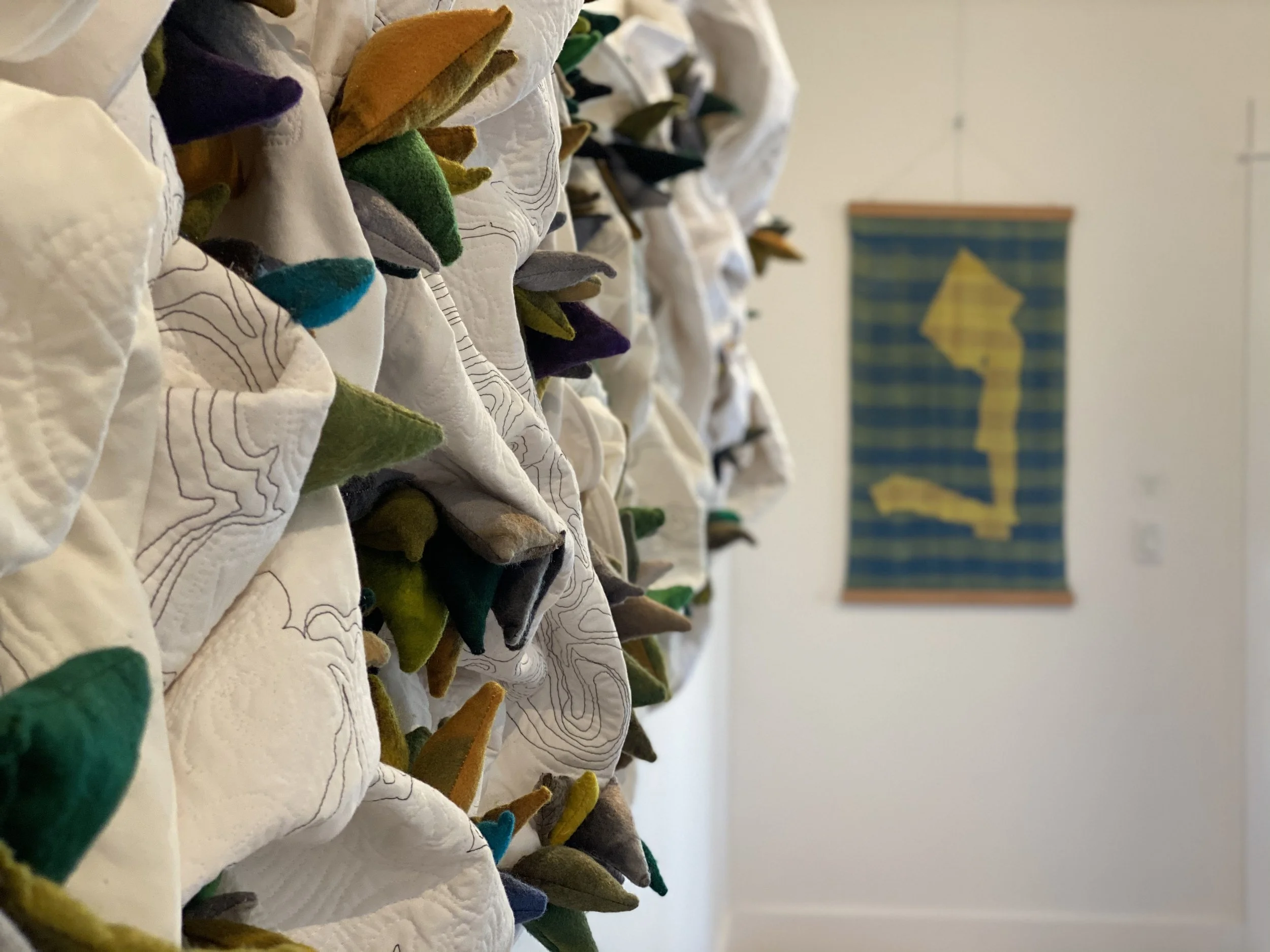 Rachael Mayer: Confer |Hand Quilted Cotton, Hand Dyed Eco Felt|48 x 132 in. (dimensions variable)