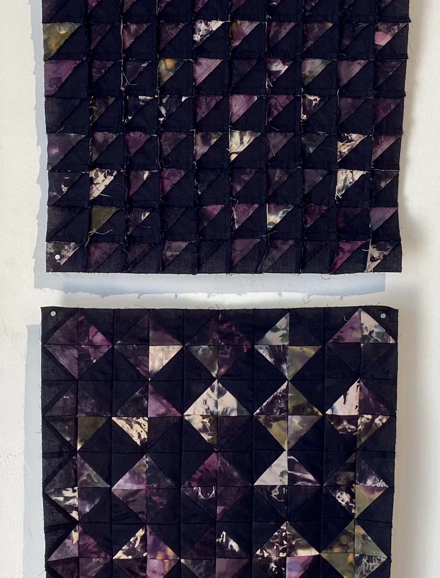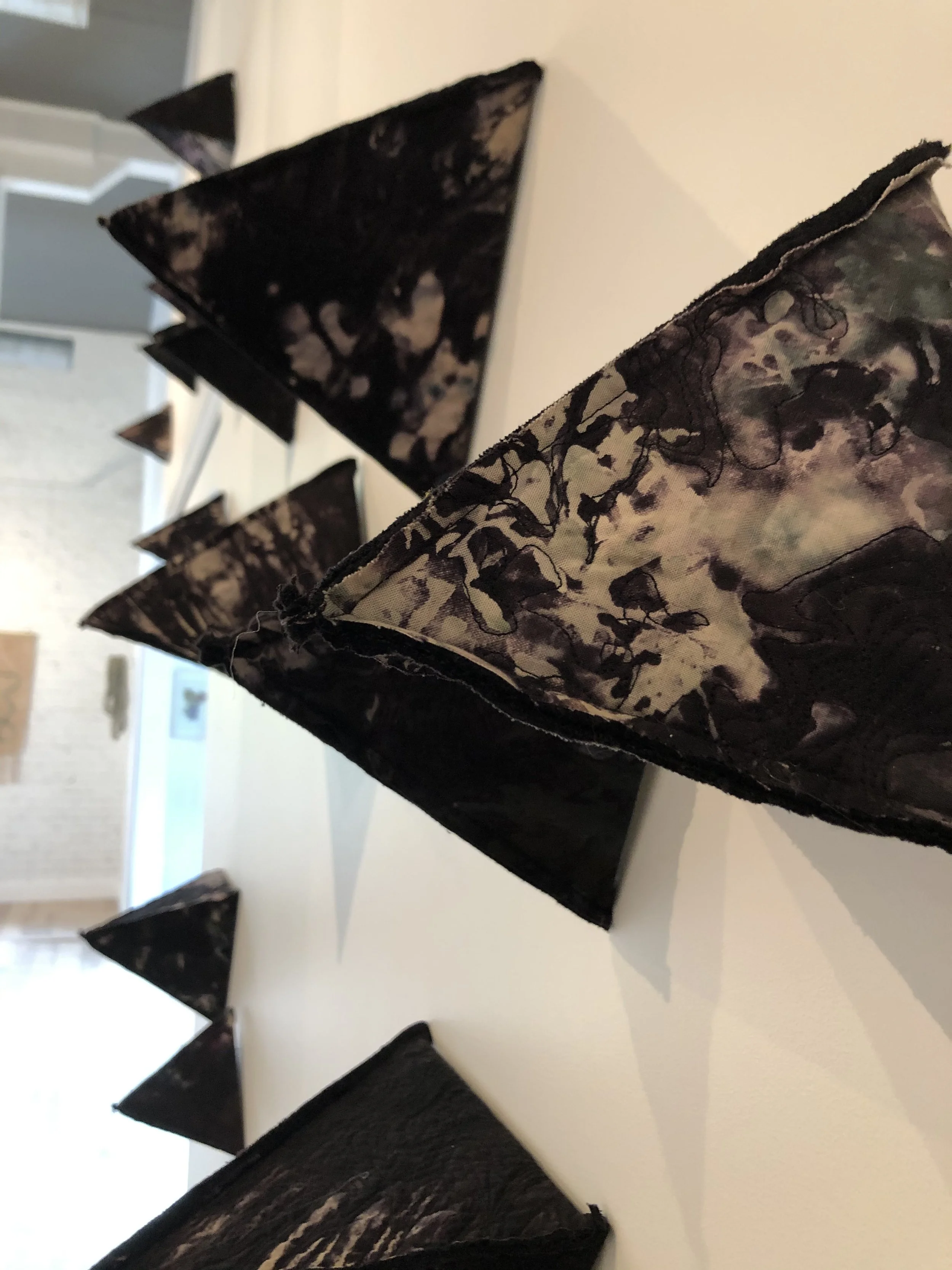 Rachael Mayer: Form | 8 Large Tetrahedrons (9.5 x 9.5 in.), 16 Small Tetrahedrons (7 x 7 in.) | Hand Dyed Cotton