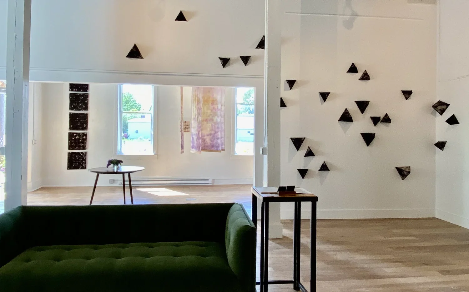 Both artists come from backgrounds rooted in our western landscapes, one may even go so far as to say they are kin with the natural world around them. It doesn’t just influence their art, it is their art. The place-making natural dyes, the invitation to interface with their tactile pieces, the process of belabored weaving with delicate threads speak to a true connection to the natural world.
